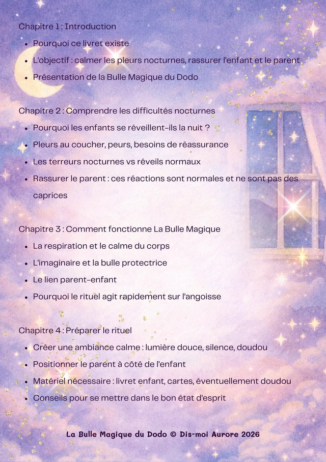• Contient des conseils pratiques, explications sur le sommeil et les émotions, techniques de respiration et phrases rassurantes
